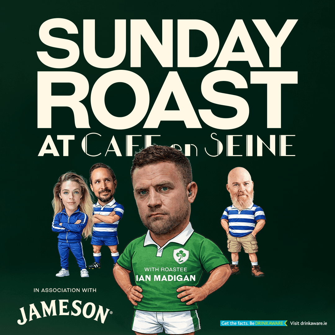 Ian Madigan will be the guest of honour to the inaugural “Sunday Roast” series, where Jameson and Café en Seine have collaborated to create Dublin’s first comedy roast and Sunday dinner event… An event that is set to be the hottest ticket in Dublin!