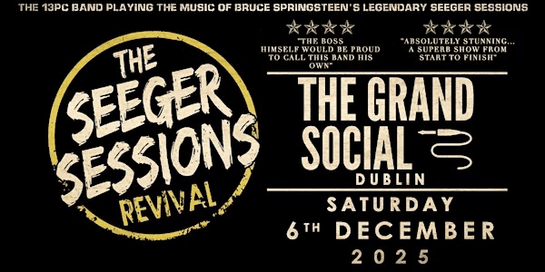 Following a string of sold out shows throughout 2024, The Seeger Sessions bring their fantastic energy back to Dublin, to The Grand Social. The Seeger Sessions Revival – The 13-piece band ‘reviving’ the spirit, energy and musical exuberance that was Bruce Springsteen’s Seeger Sessions album and live shows. This diverse…