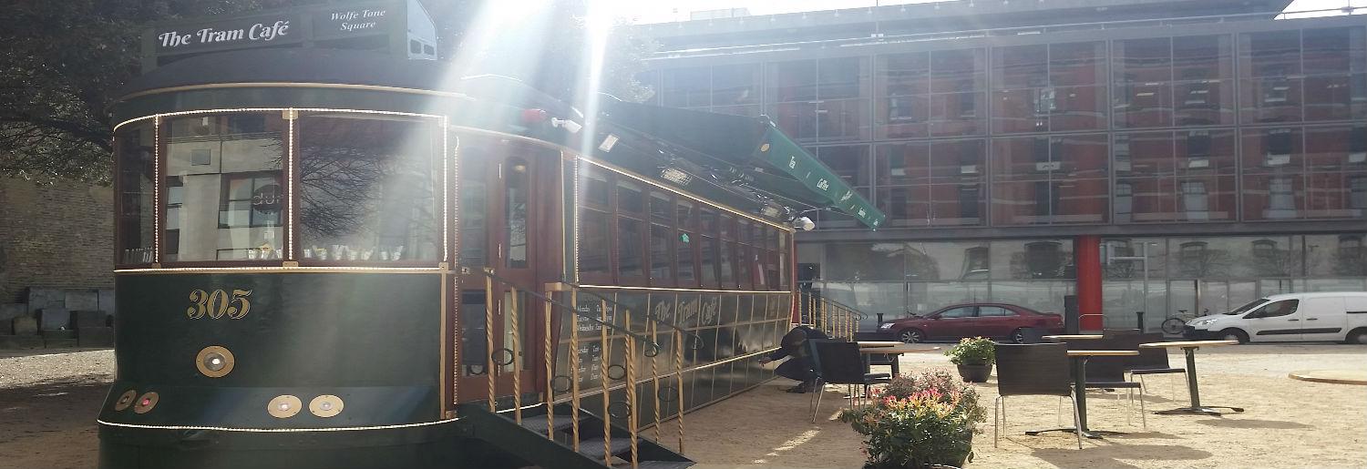 We are delighted to see the vintage Tram Cafe finally in place on Wolfe Tone Square. We first heard about this very innovative idea over a year ago and gave it our full support. For those that don’t know Wolfe Tone Square, it is to the side of The Jervis Shopping Centre and behind The Church Bar & Restaurant.