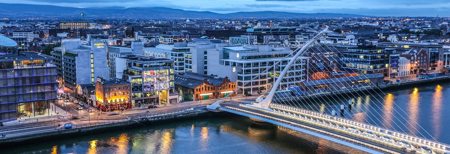 As the centuries progressed our city continued to grow, Eastward Dublin Port developed and later still the IFSC and Docklands areas began to emerge. To serve these new areas and connect our city, new bridges and new designs emerged to reflect a modern city, new names too. The city’s rich literary heritage was celebrated with bridges bearing the names of Sean O’Casey, James Joyce and Nobel Laureate Samuel Beckett. The style and use of the bridges had progressed, the Beckett Bridge reminiscent of the Irish harp straddling the river, while the pedestrian only O’Casey Bridge pivots in sections so as to accommodate boats sailing up the Liffey.