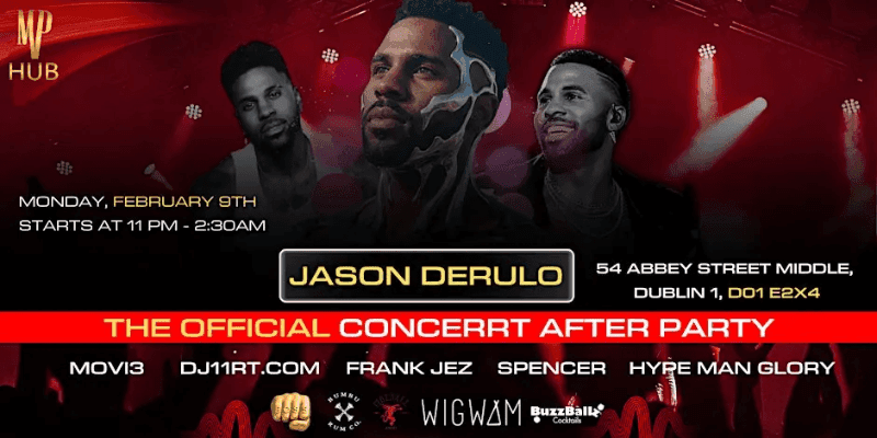 This is the ONLY official after party following the concert. Limited capacity – early arrival strongly advised. JASON DERULO – OFFICIAL CONCERT AFTER PARTY 🔥 Straight after the concert, the party continues in the heart of Dublin. We are proud to host the Official Jason Derulo After Party featuring: 🎧…