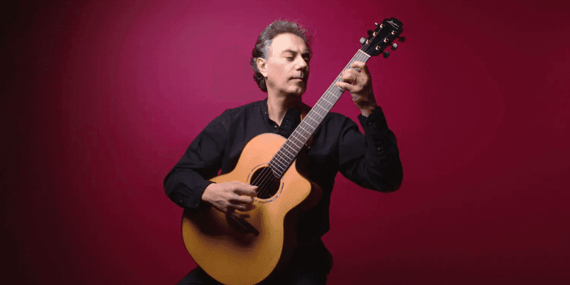 If world music is the artful fusion of tradition and innovation- blending folk roots with jazz, classical, and contemporary expression – Pierre Bensusan stands among its most eloquent voices. A pianist by training and self-taught guitarist, his pioneering approach to open tunings, especially DADGAD, has reshaped the acoustic guitar’s expressive possibilities.