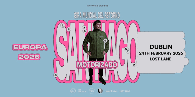 live tonite presents Argentinian indie rock superstar Santiago Motorizado Irish solo debut show on 24th February at Lost Lane from 7:30 PM Santiago Motorizado is the singer and frontman of El Mató a un Policía Motorizado, the legendary Argentine band that led the new Latin American alternative rock movement of the new…